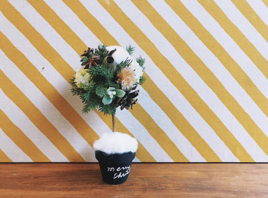 11月の花あしらいクラスのテーマは、「クリスマスツリーのトピアリー」です。